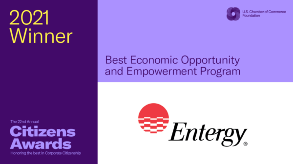 The U.S. Chamber of Commerce Foundation named Entergy the winner of the Best Economic Opportunity and Empowerment Program during its 22nd Annual Citizens Awards. The Citizens Awards program recognizes the most innovative and impactful corporate citizenship initiatives that raise the bar on social responsibility and advance a more equitable and sustainable future.